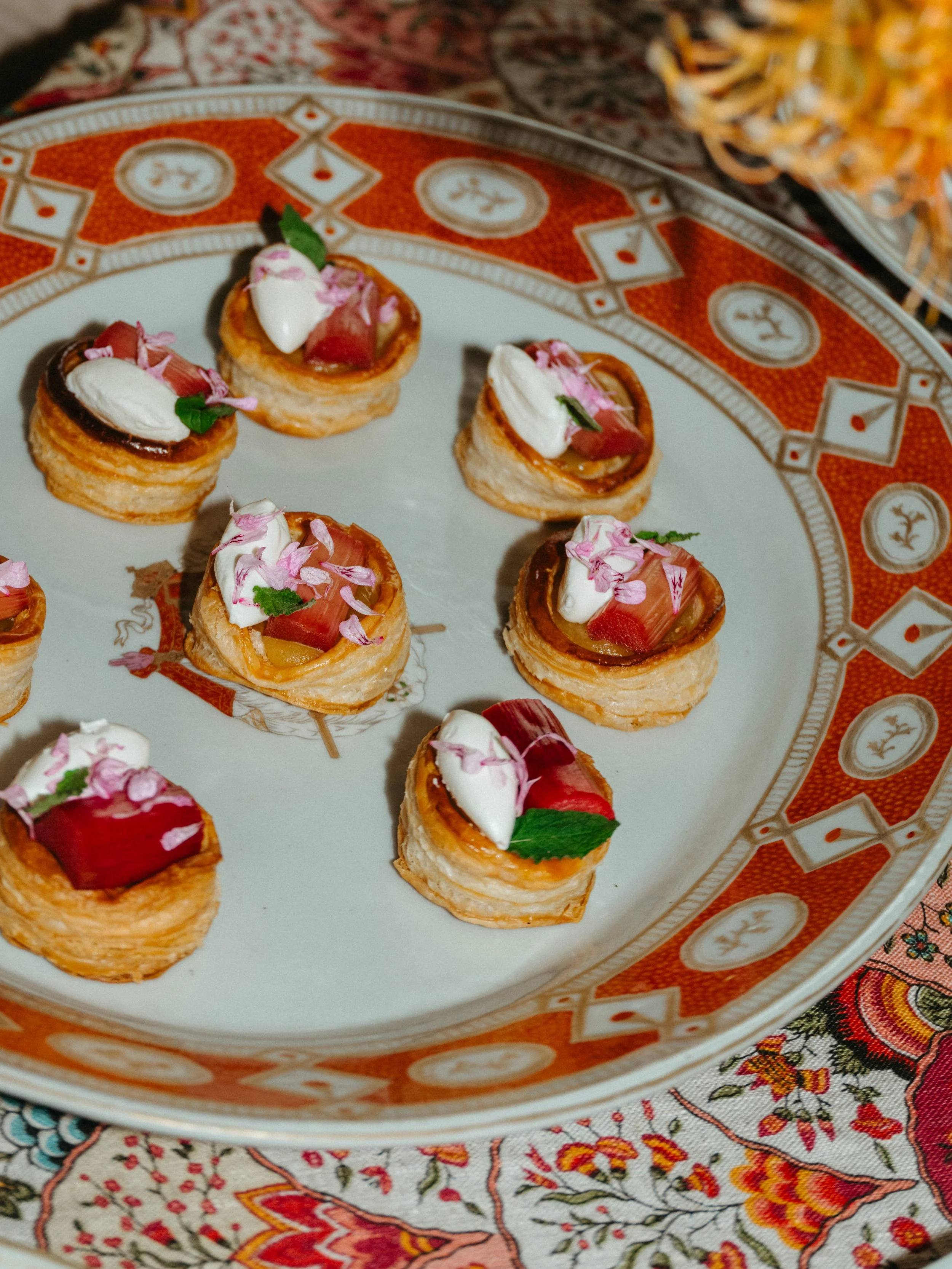 Luncheon for the launch of the new collection inspired by Bunny Mellon’s garden. Bright colors, fresh produce, and beautifully presented small bites were requested to match the prints of the luxury wallpaper.